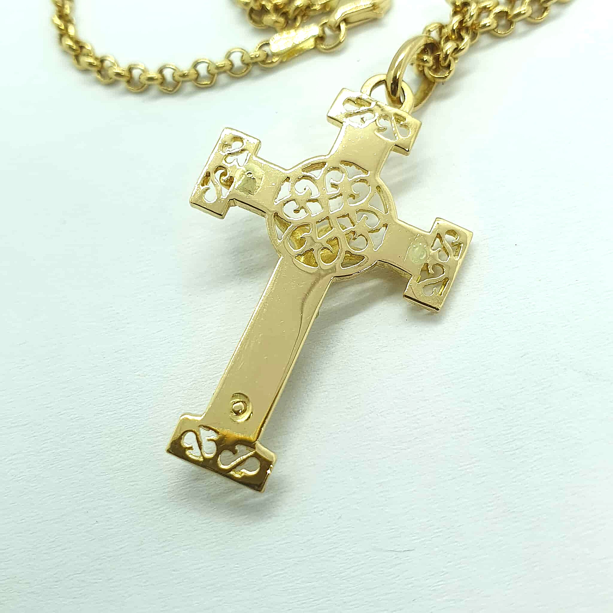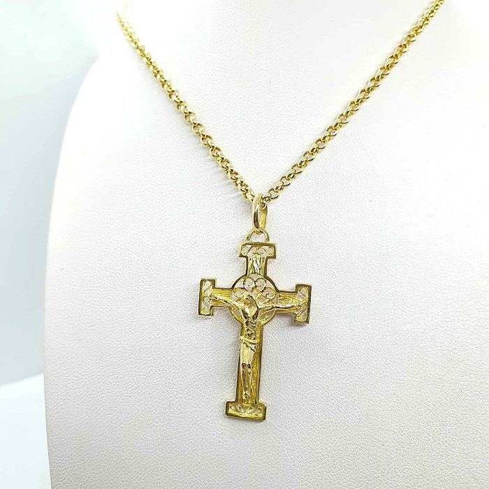 Collana maglia rolò con pendente croce in oro giallo 750.