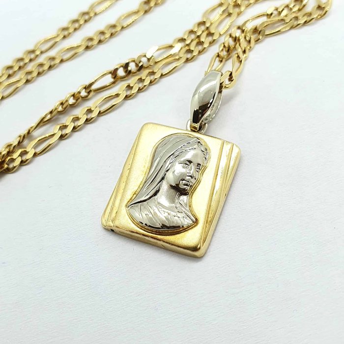 Collana con pendente La Vergine Maria in oro bianco- giallo 750 .