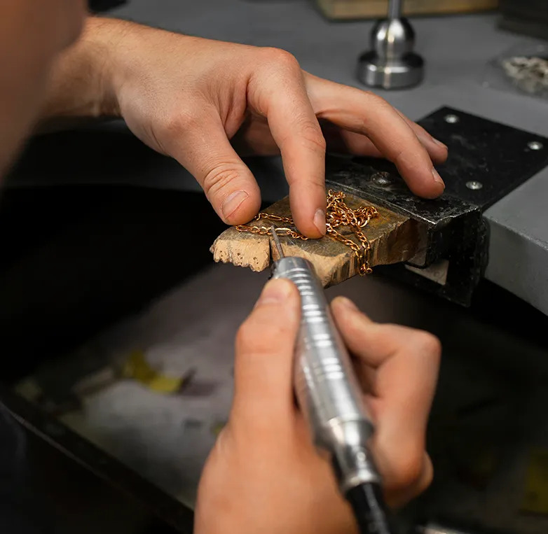 Oltre alla creazione, il nostro laboratorio orafo Roma è specializzato nella riparazione e nel restauro di gioielli rovinati dal tempo o dall’usura. Interveniamo rispettando l’integrità originale del pezzo, preservando il suo valore affettivo e stilistico. Ripariamo metalli spezzati, rinforziamo castoni, reinseriamo pietre mancanti e ricostruiamo parti danneggiate con tecniche delicate e sicure.