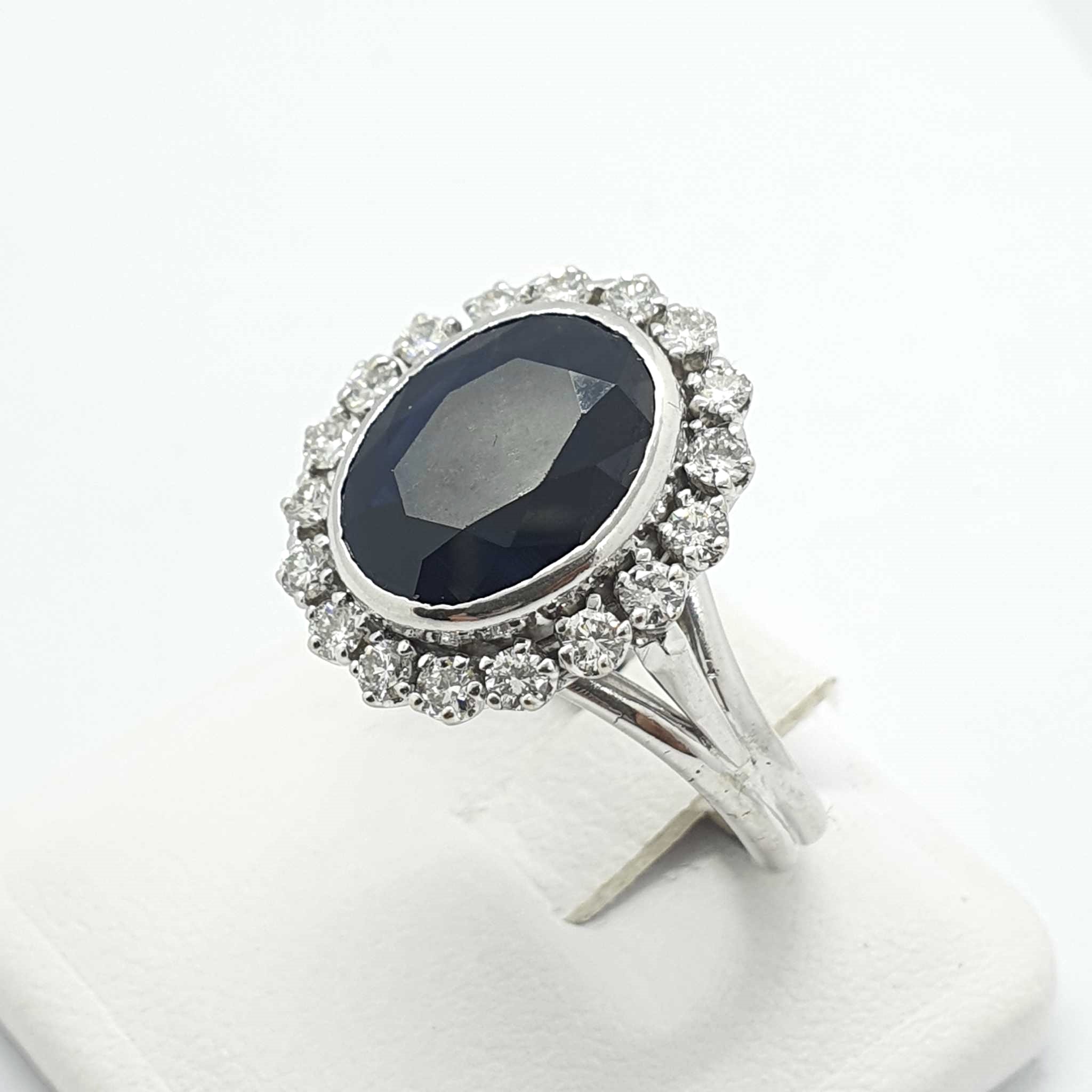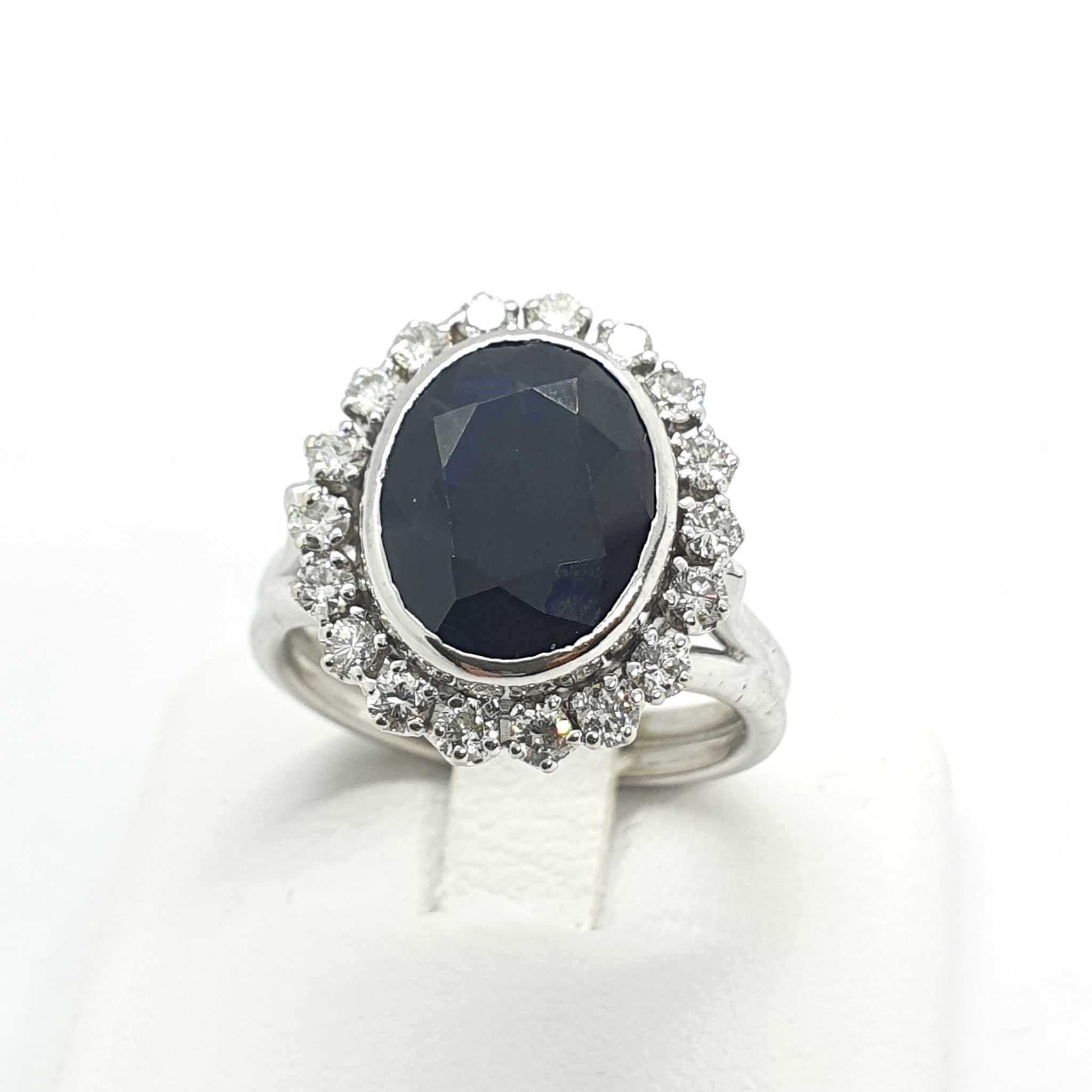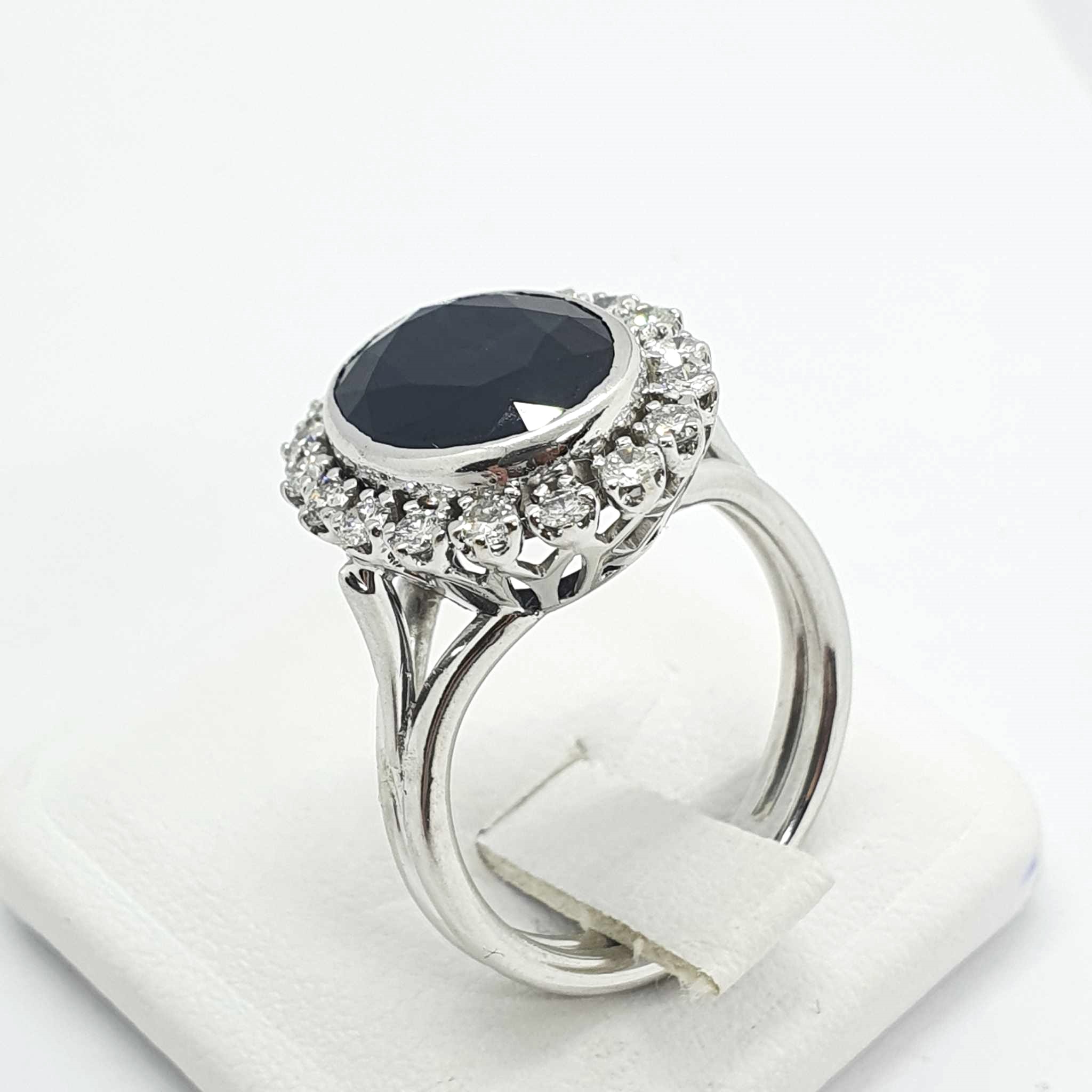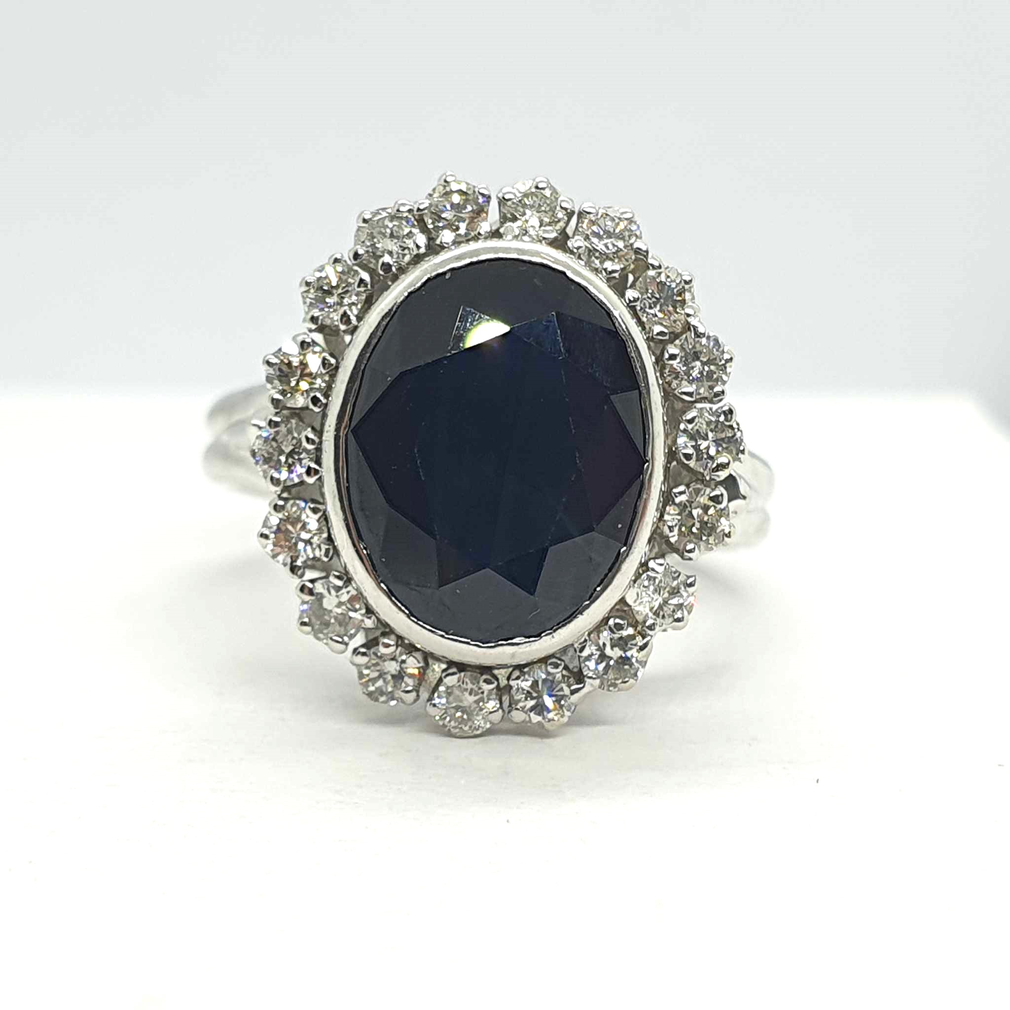 Con centrale di zaffiro 3,10 ct, incorniciato da 18 diamanti – 0,36 ct taglio brillante.