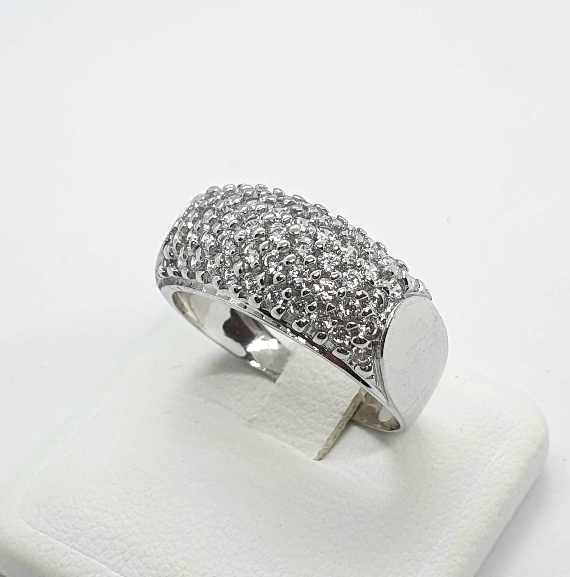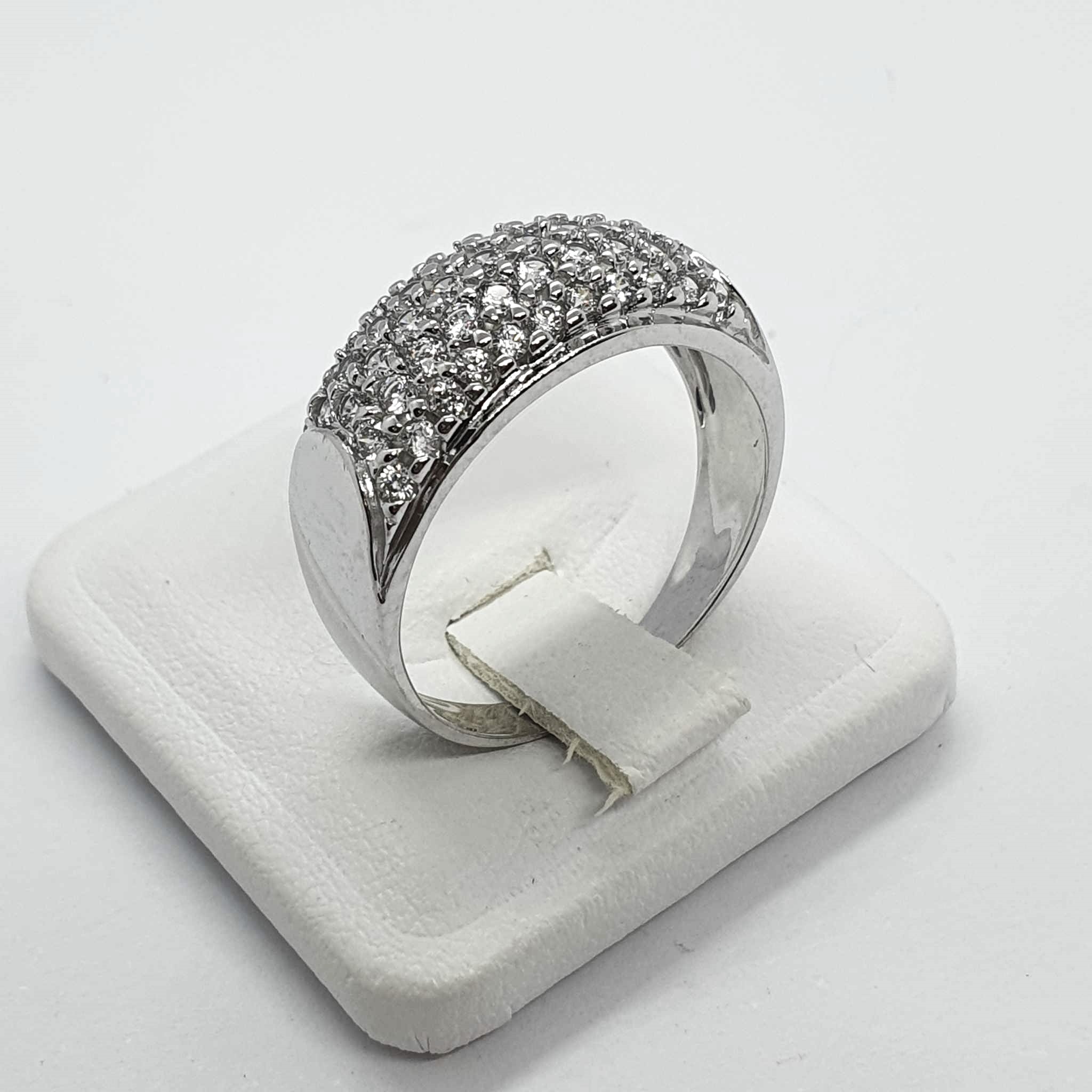 Anello a fascia in oro bianco 750 con pavè di zirconi.