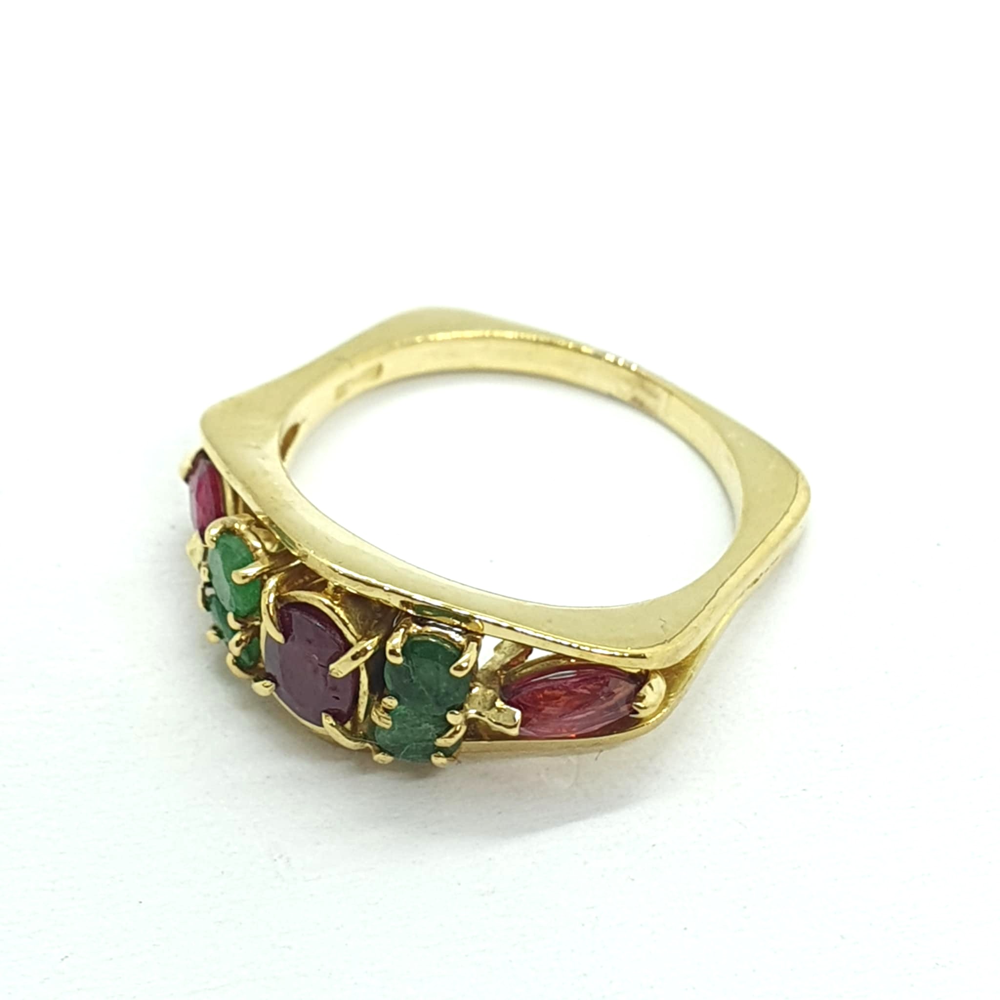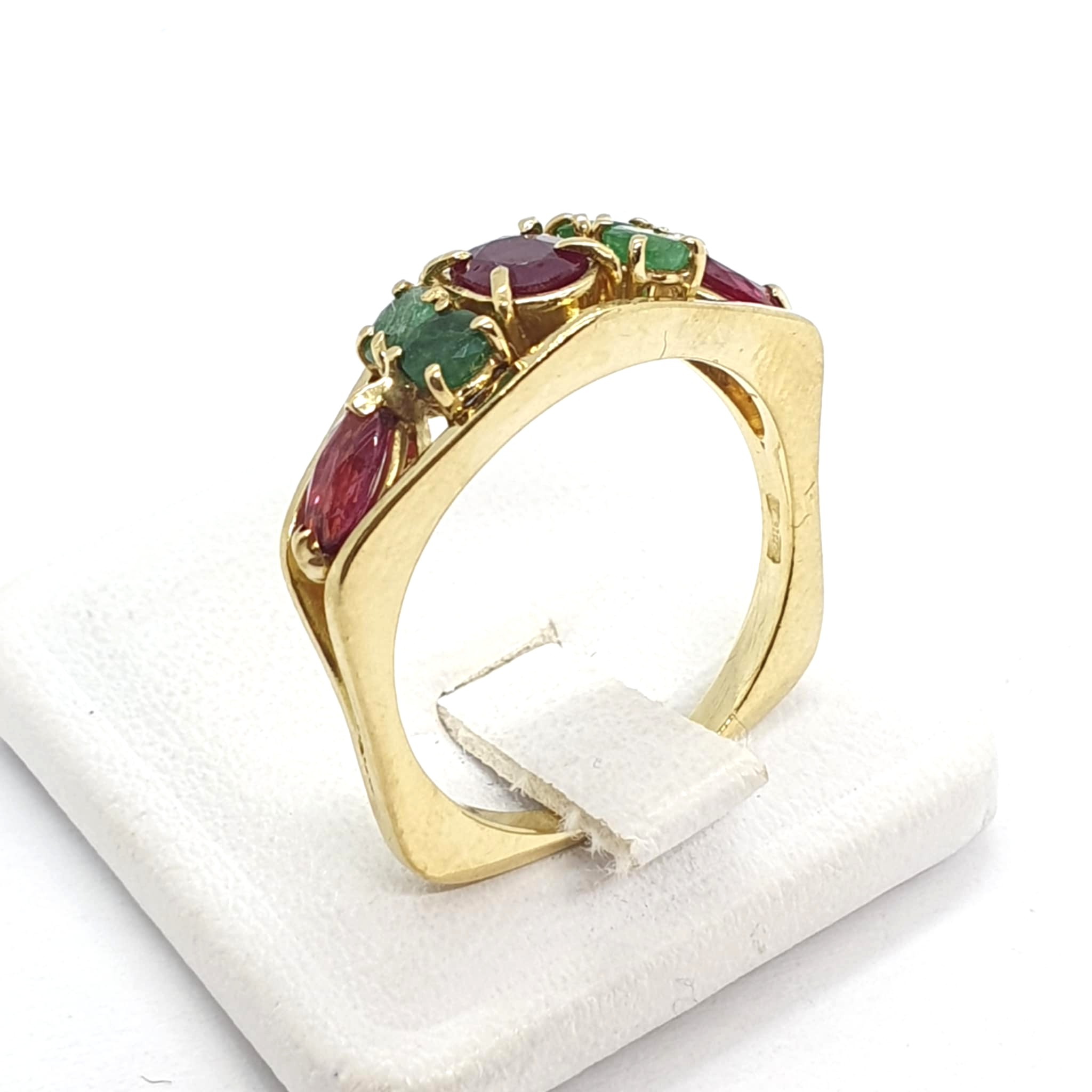 Anello oro giallo rubini e smeraldi