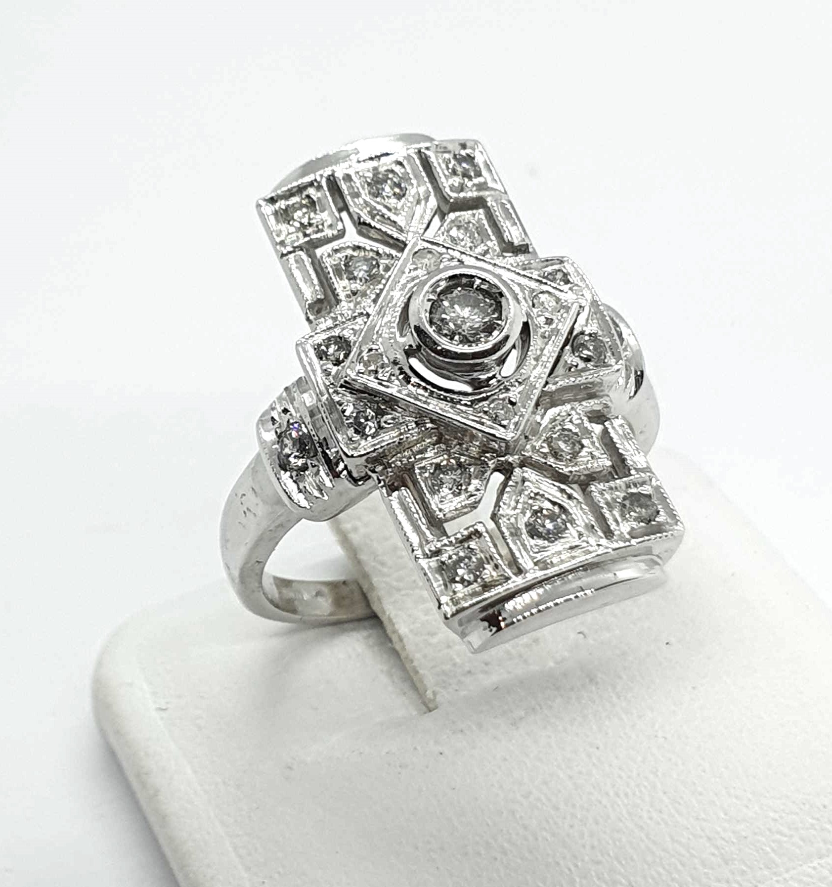 Anelo Vintage Art dèco in oro bianco 750 con diamanti .