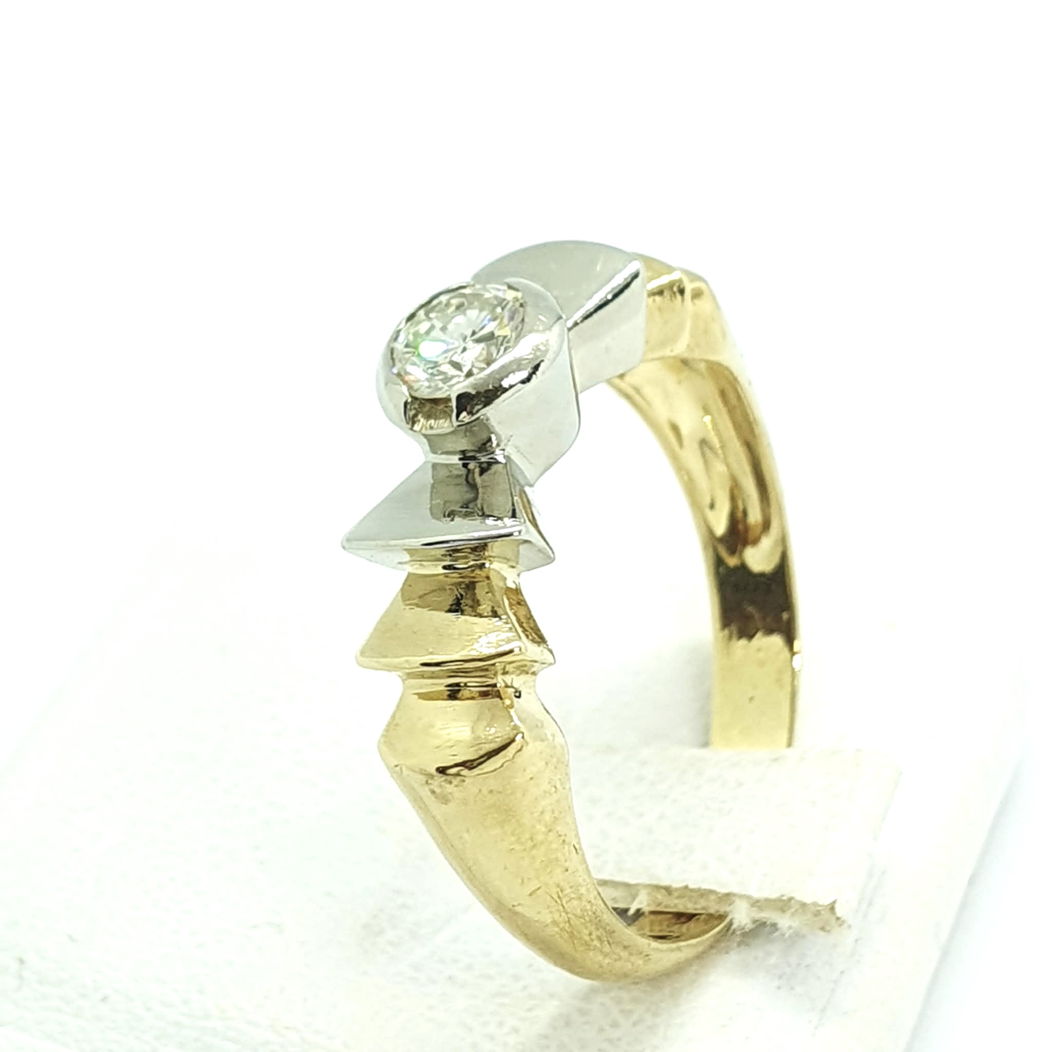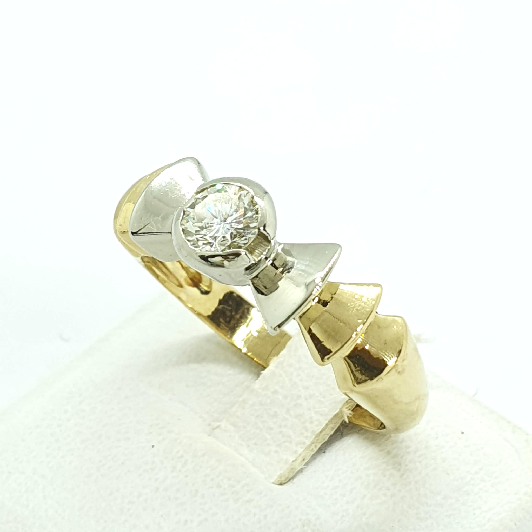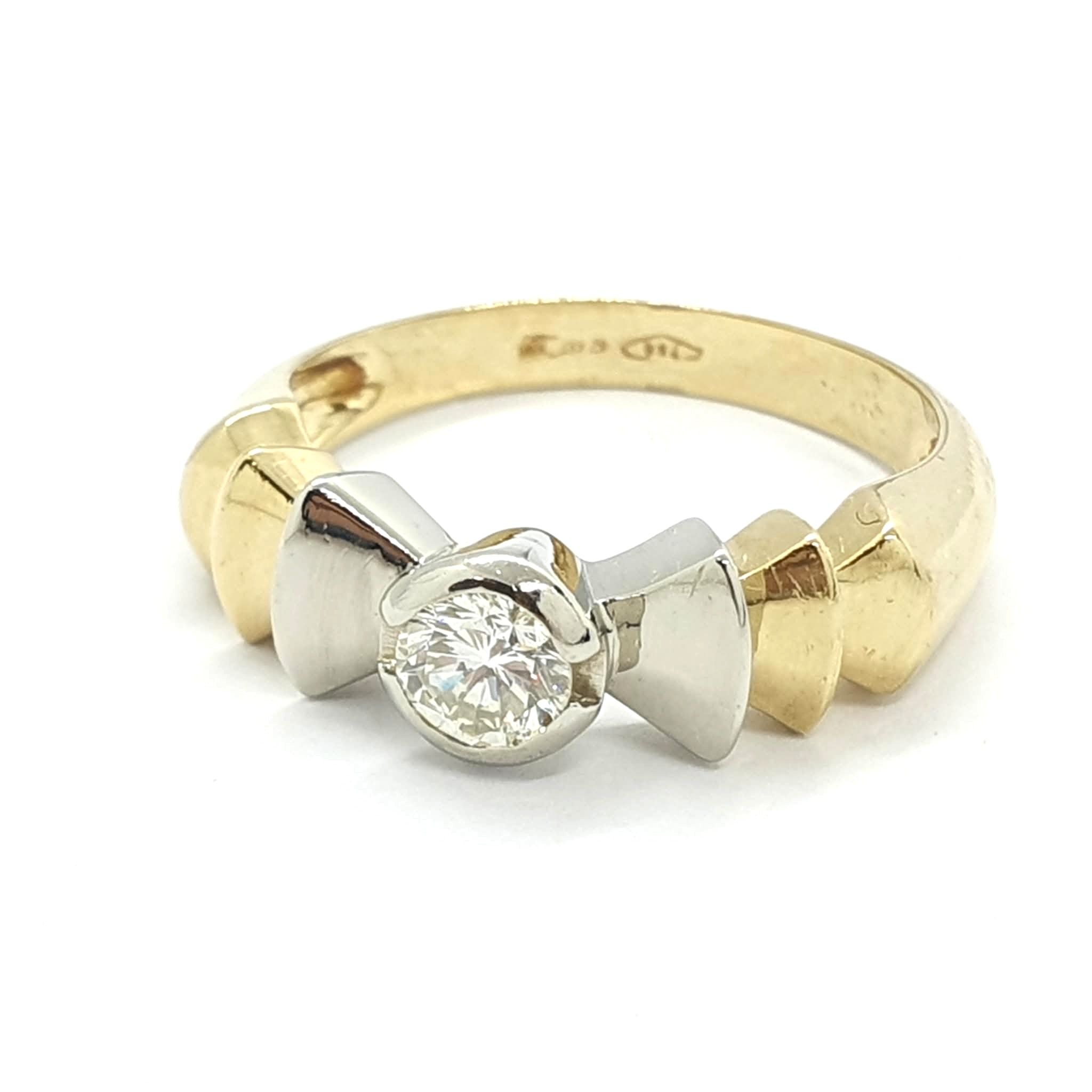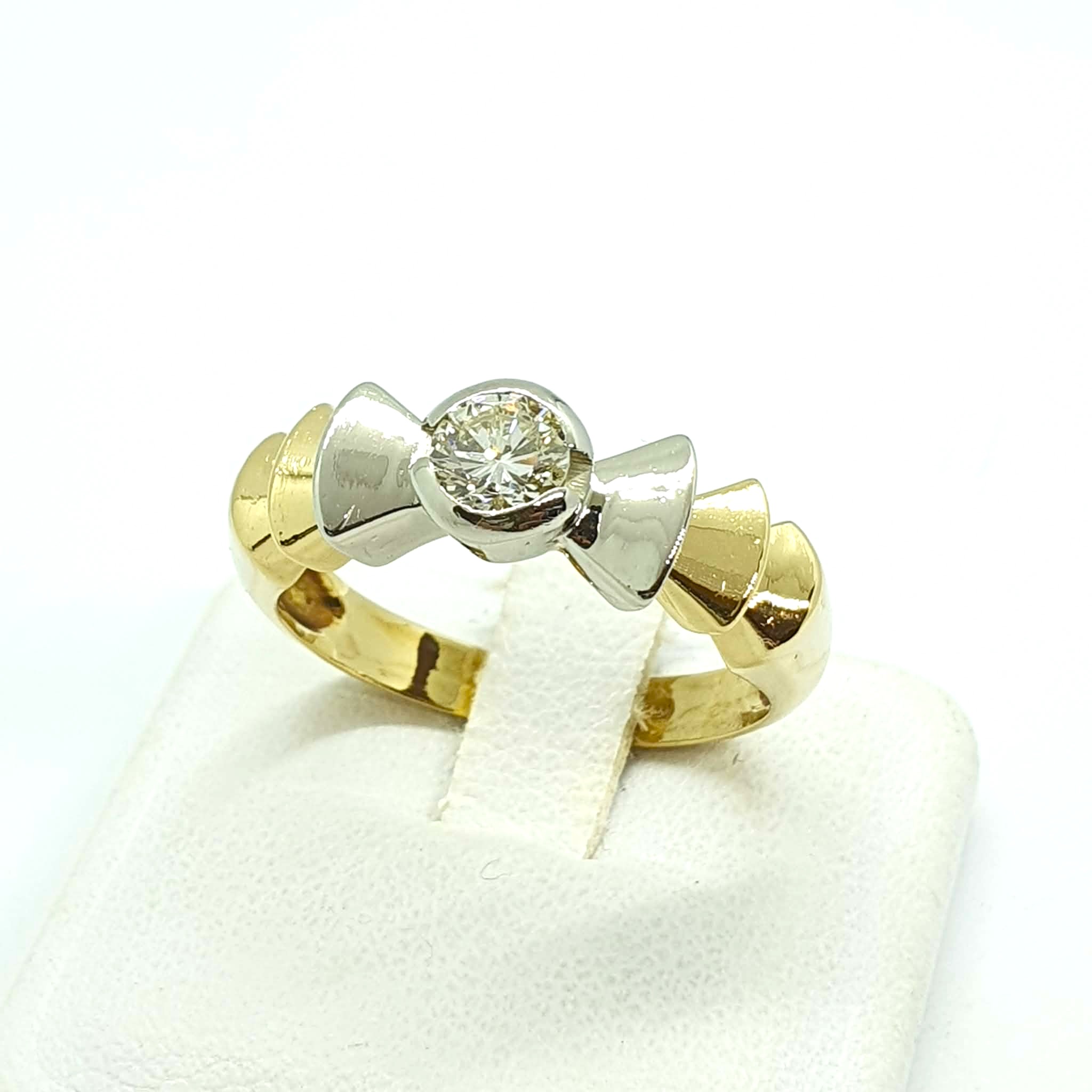 Anello vintage montatura a fiocco in oro giallo bianco 750 .