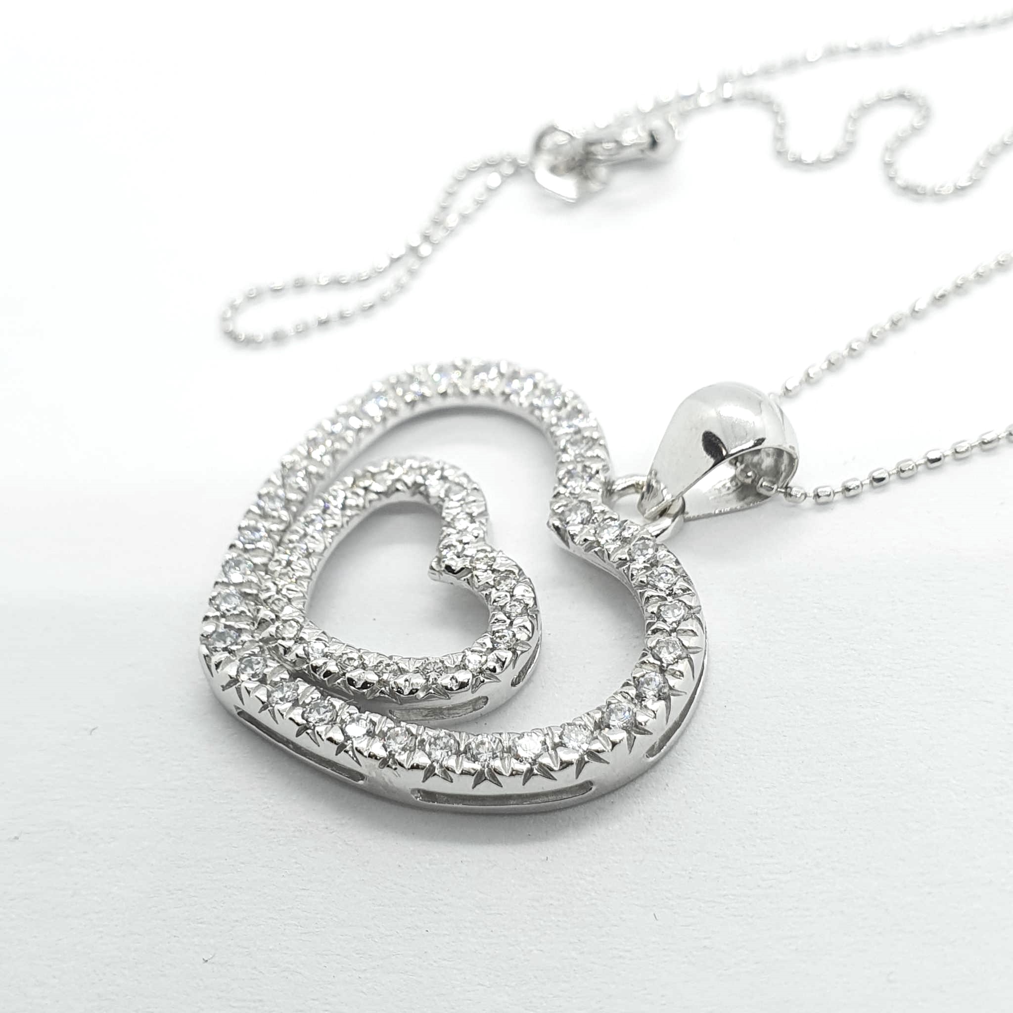 Ciondolo cuore in oro bianco 750 con zirconi.