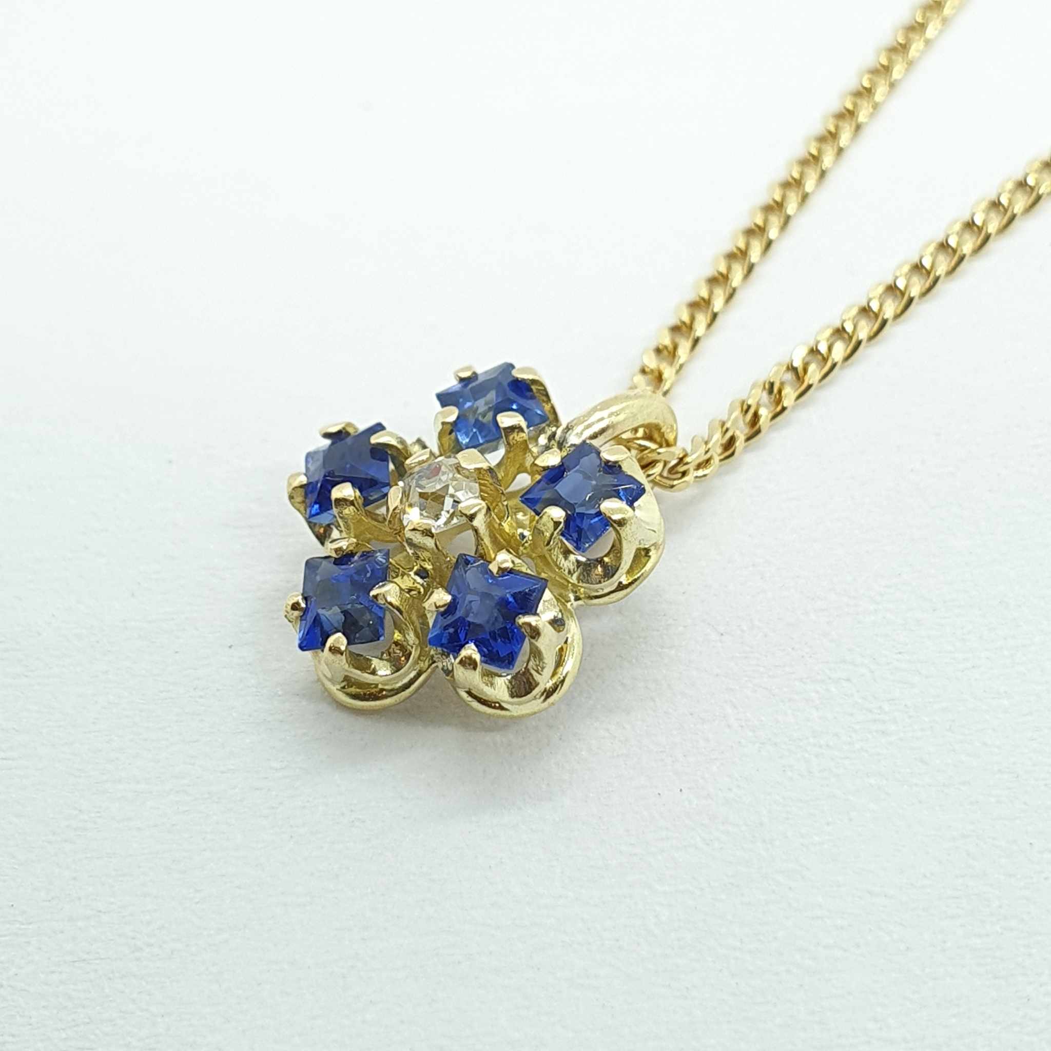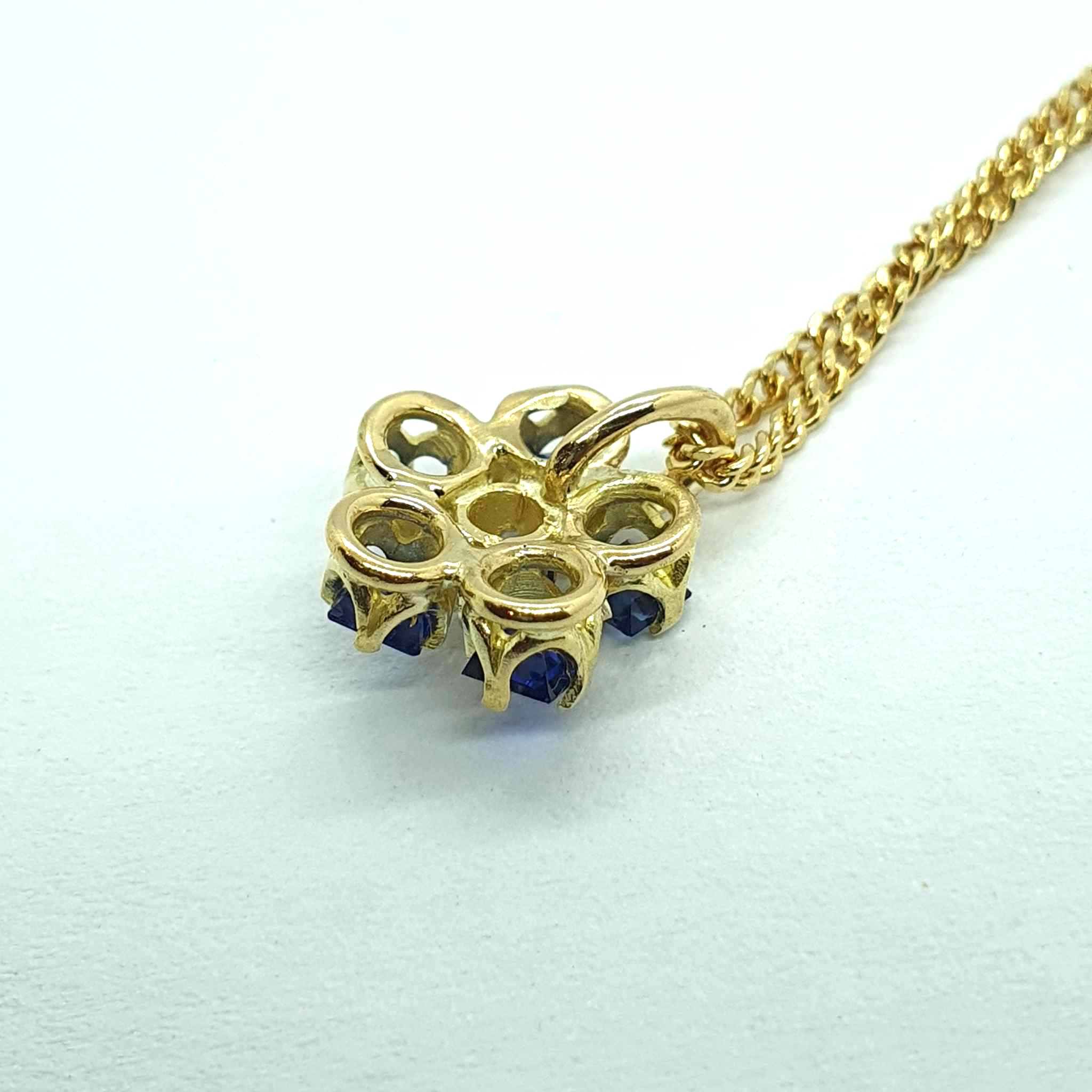 Collana maglia grumetta con pendente fiore in oro giallo 750 con diamante e zaffiri.