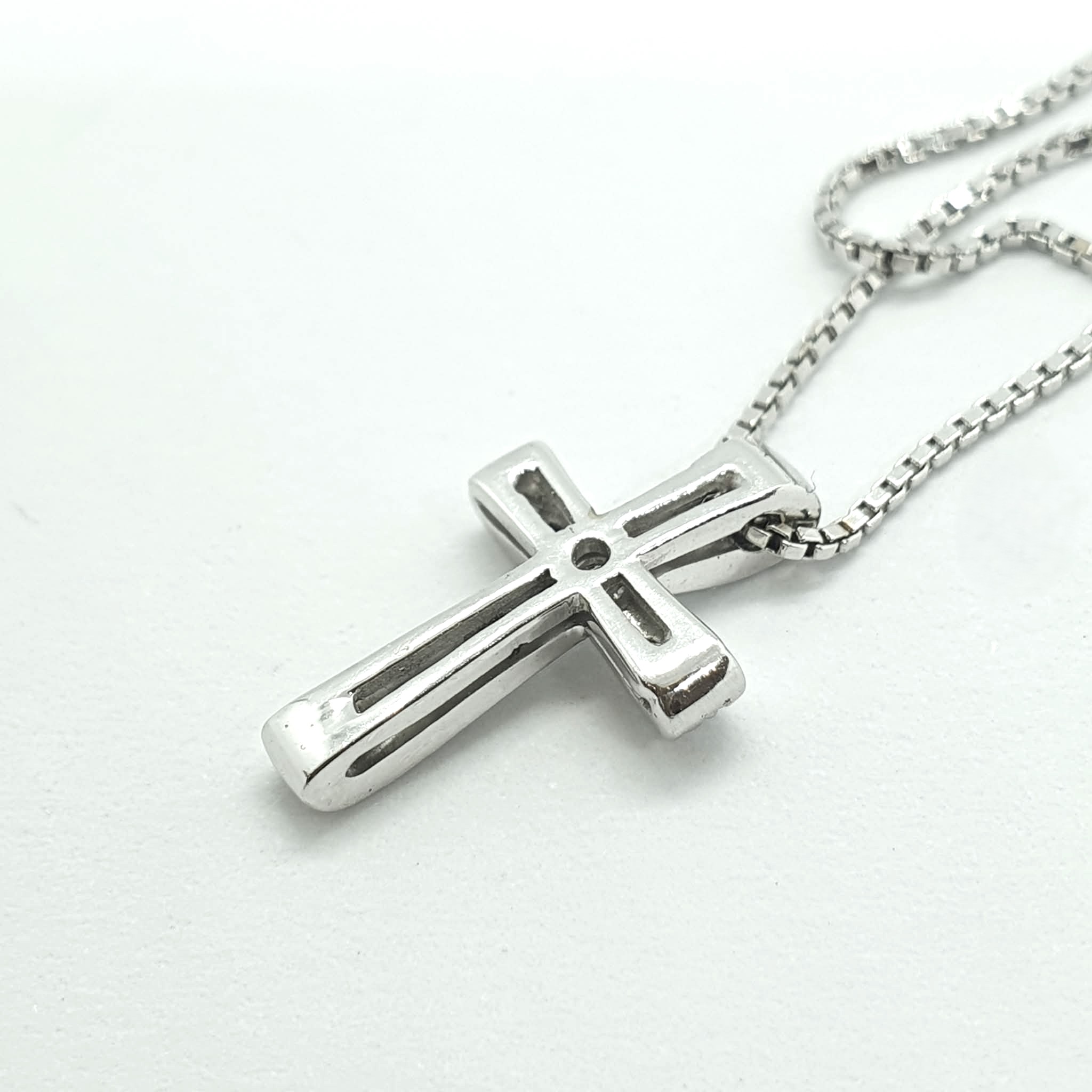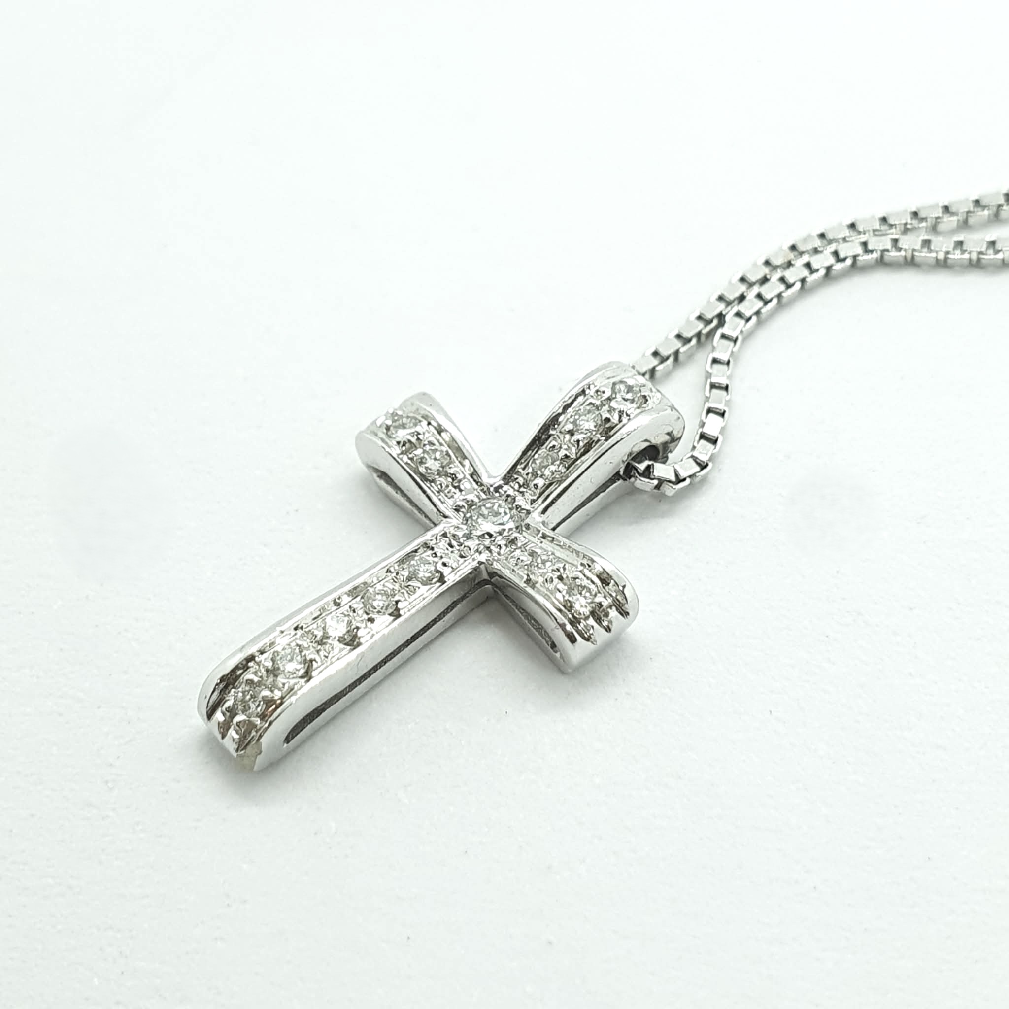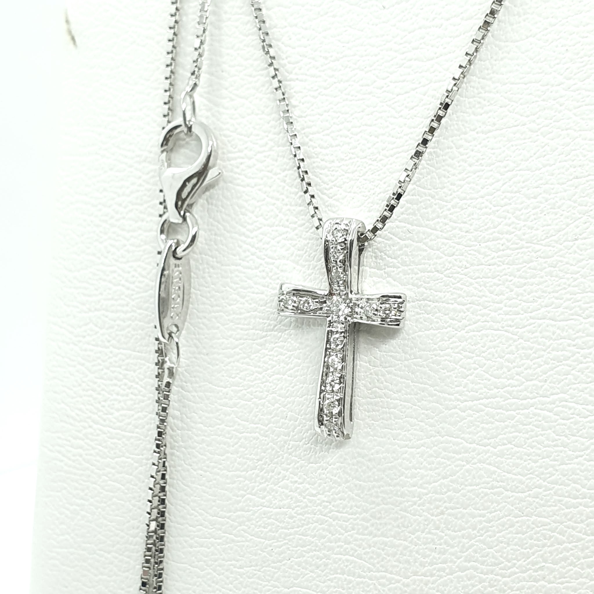 Collana maglia veneziana con croce in oro bianco 750.