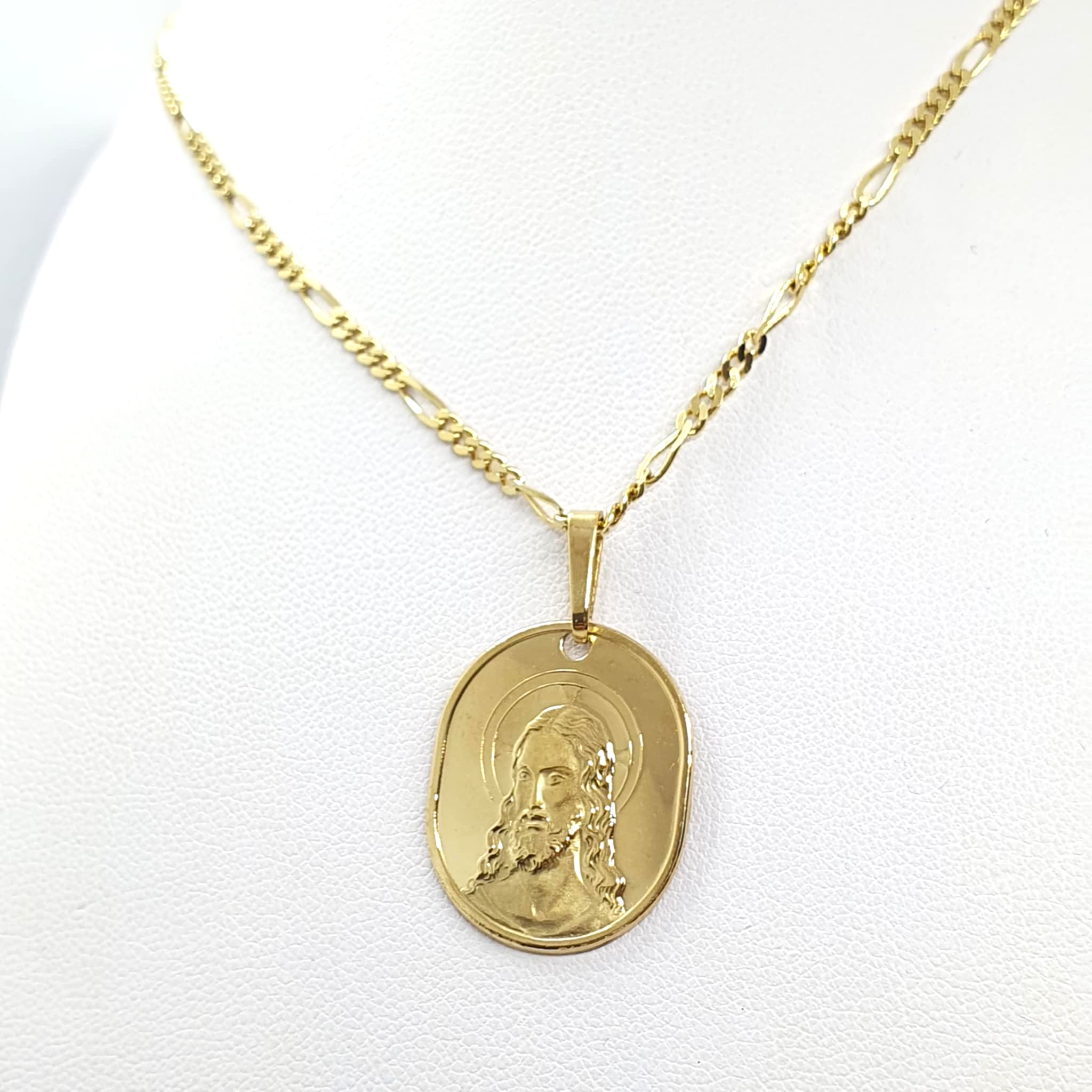 Collana con medaglietta volto di Gesù Cristo in oro giallo 750.