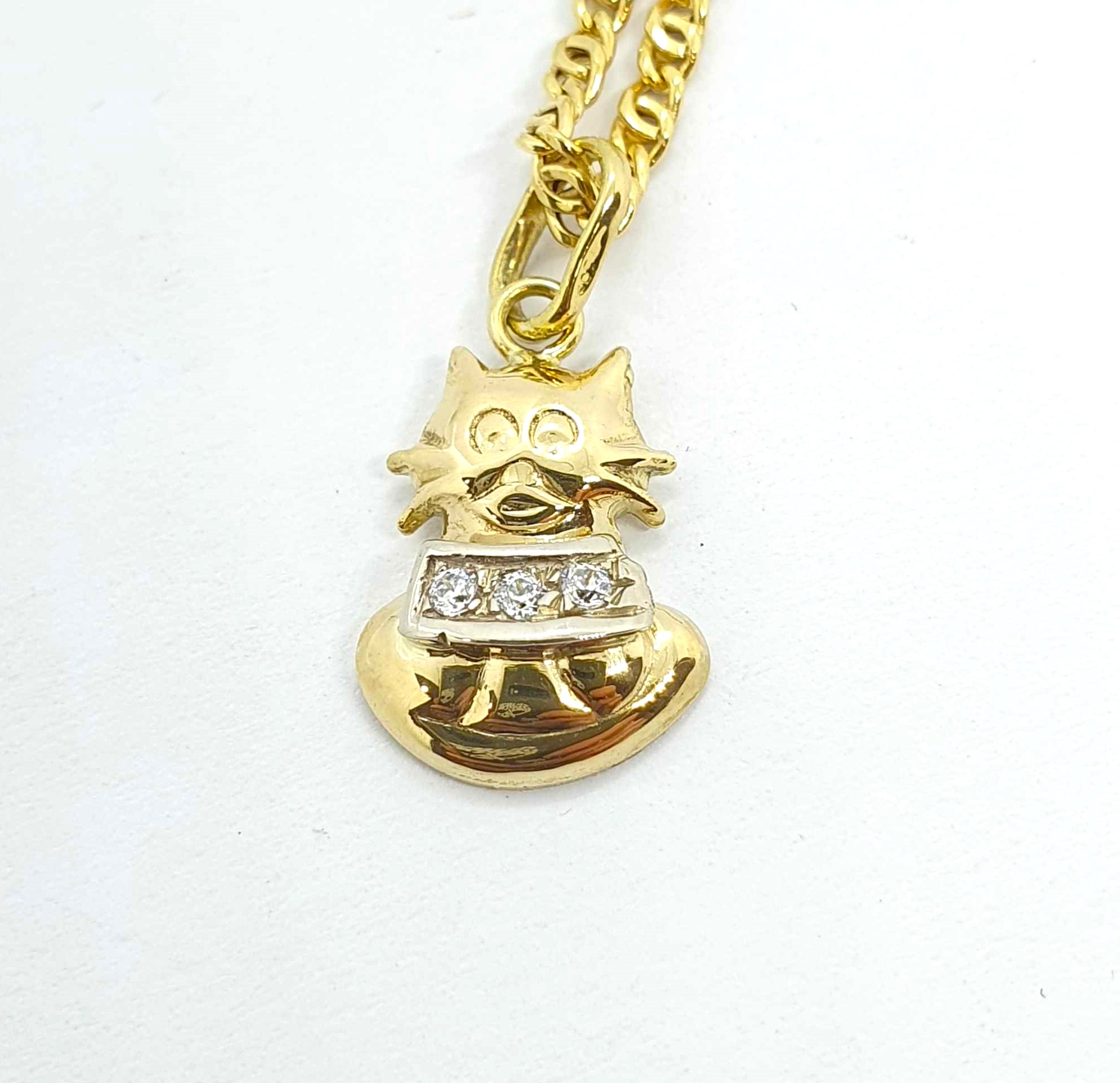 Collana con pendente gatto in oro giallo 750 e zirconi.