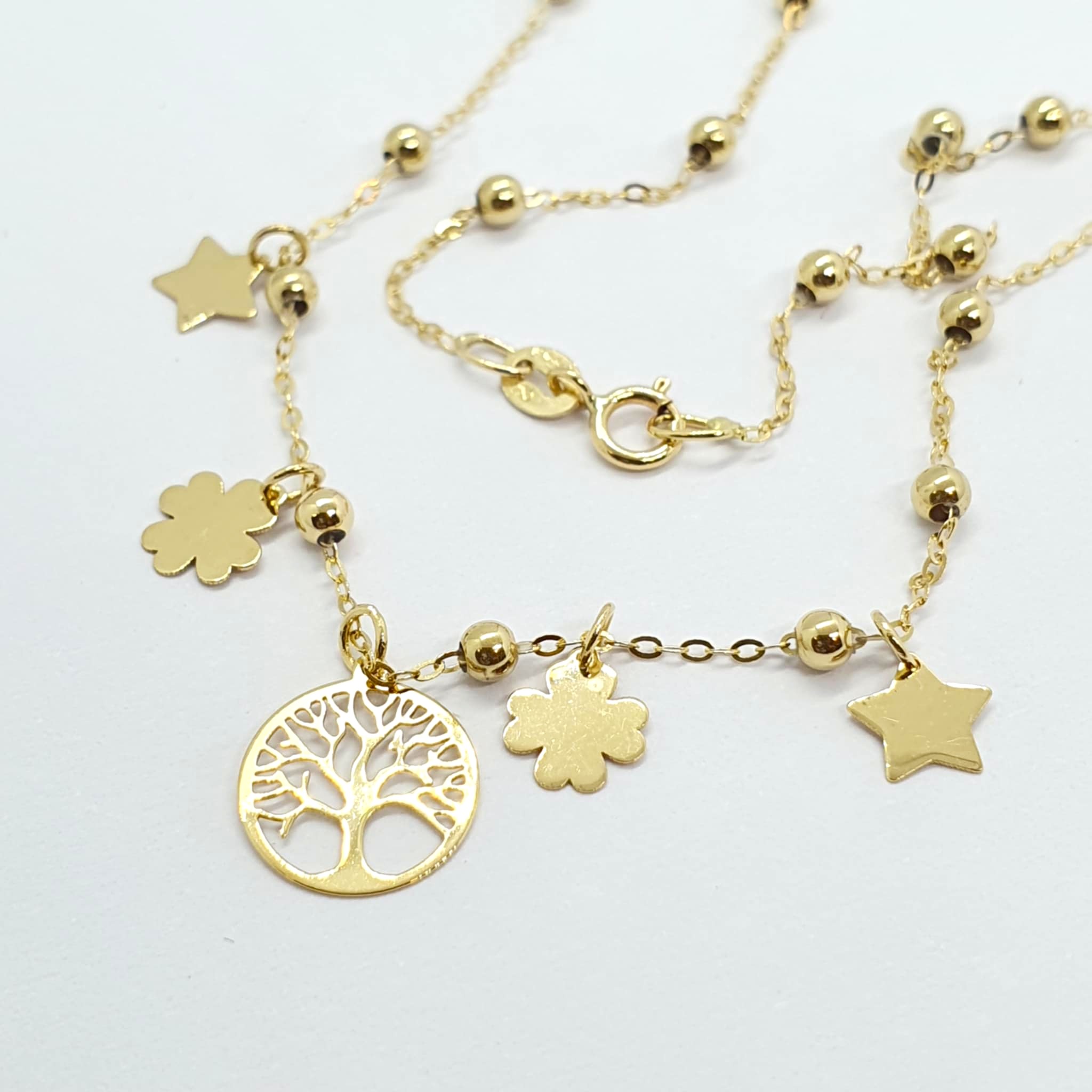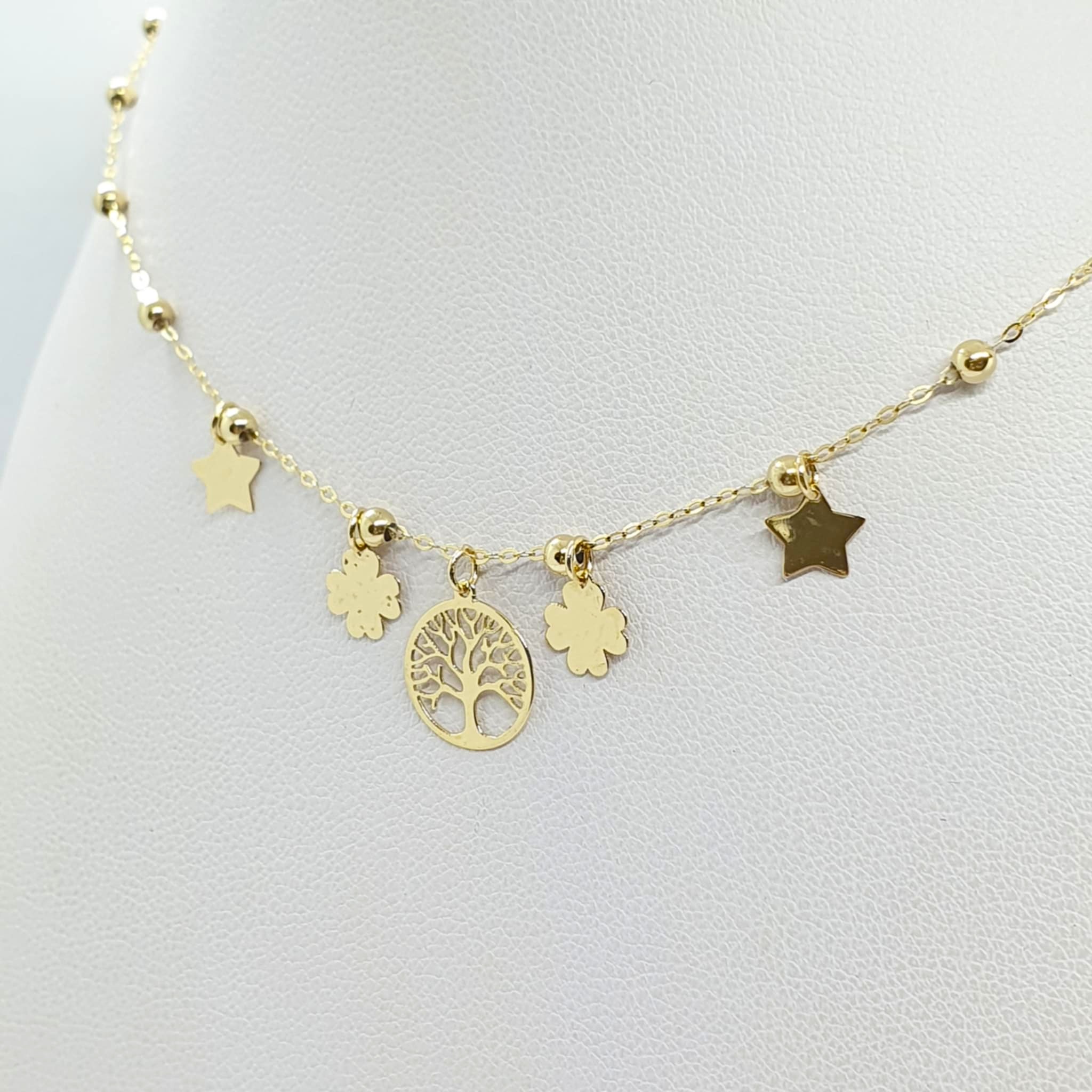 Cinque pendenti , due stelline ,due quadrifogli e un albero della vita.