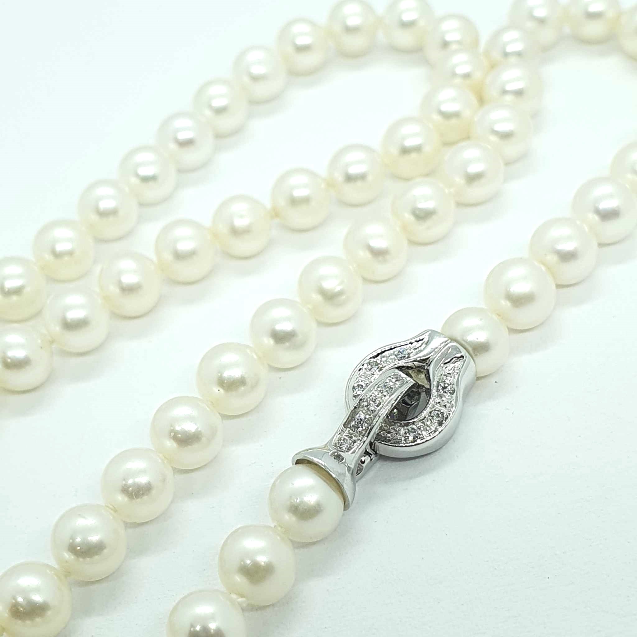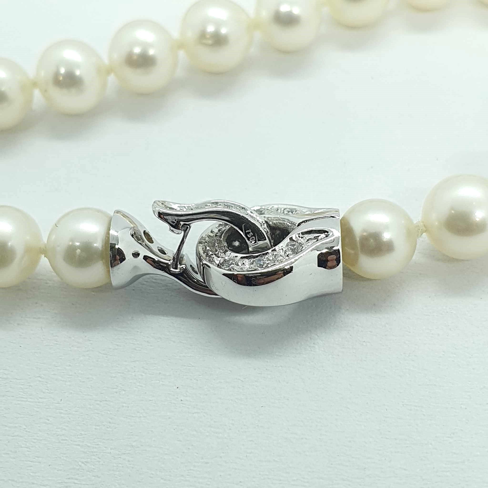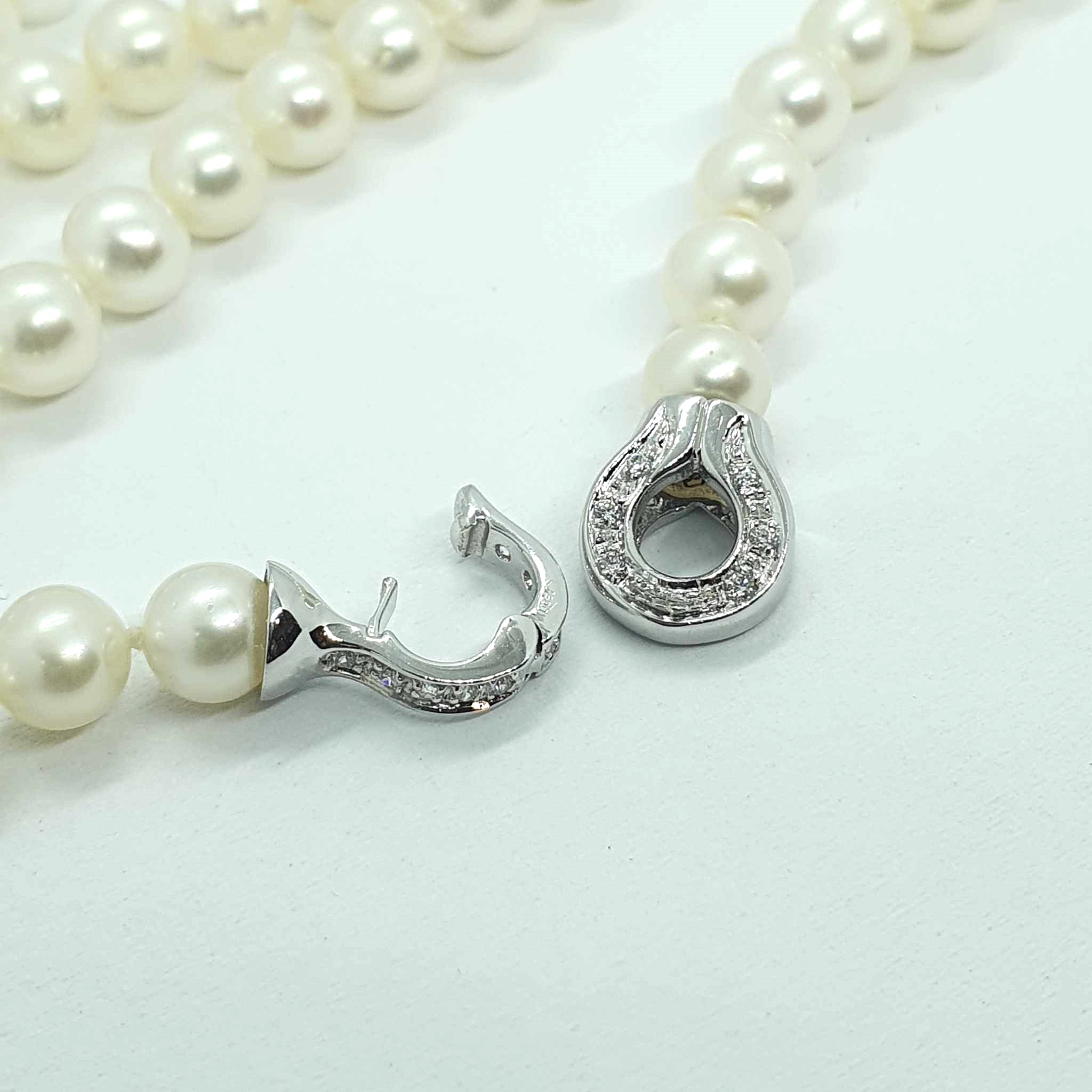 Collana perle di acqua dolce con chiusura in oro bianco 750 a zirconi.