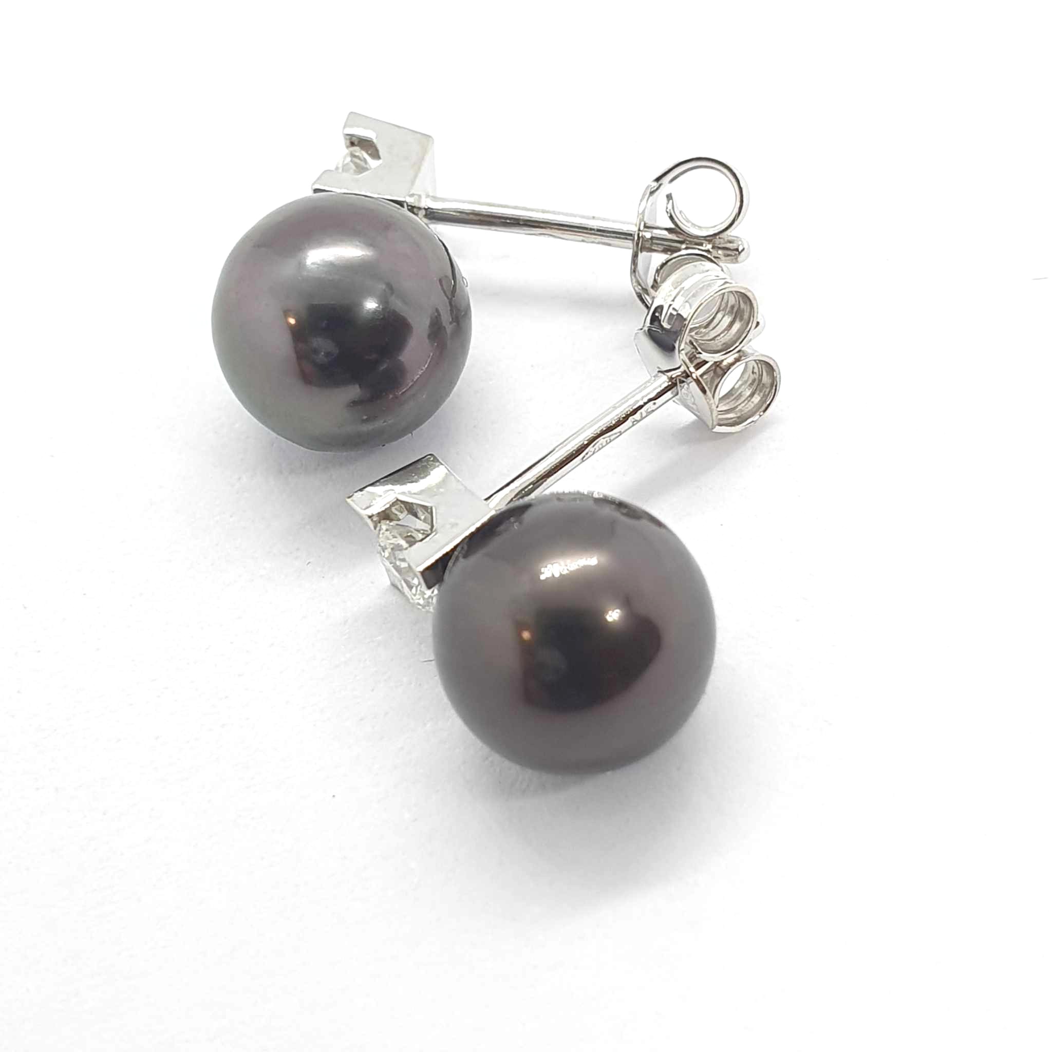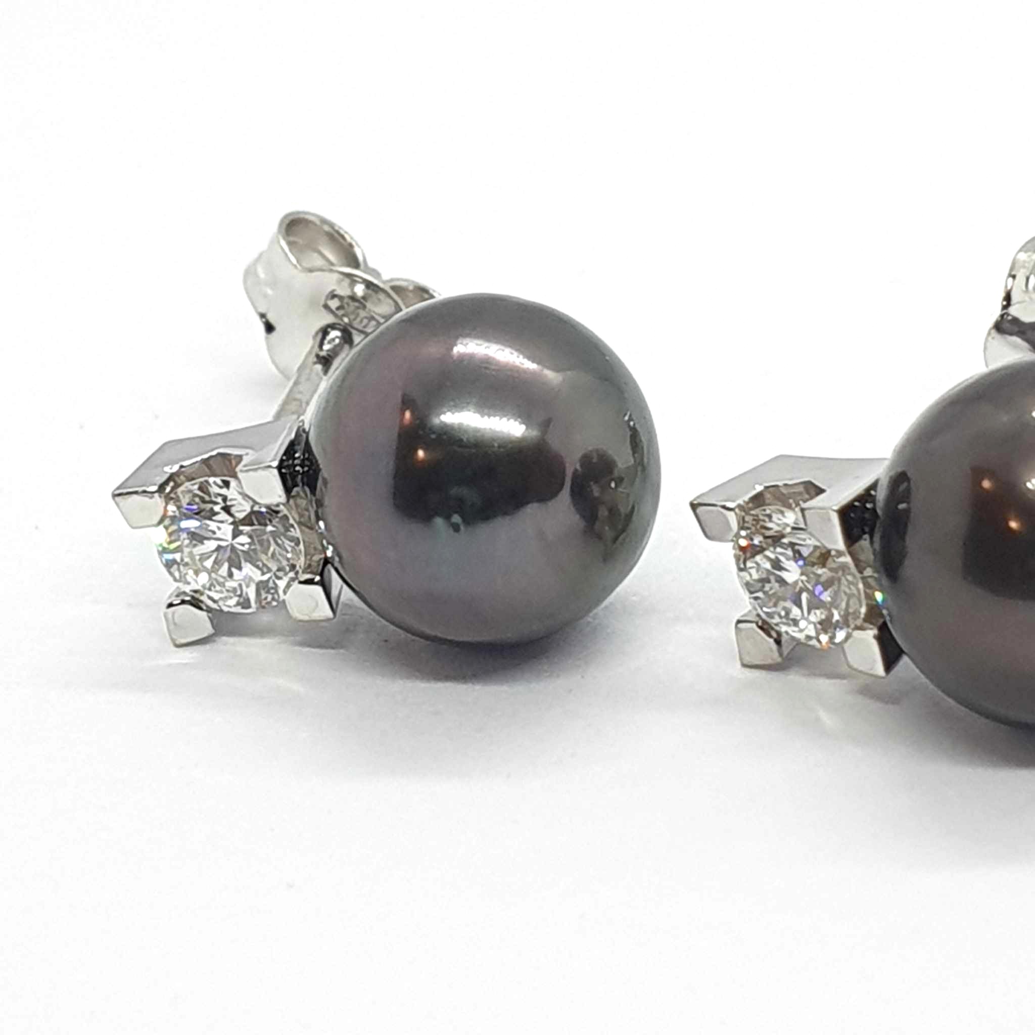 Orecchini a lobo in oro bianco 750 con perle Tahiti.
